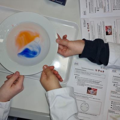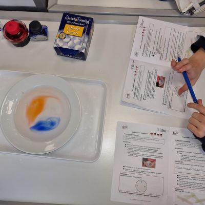 Herr Averbeck bereitete mit seinem SFZ-Kurs, in dem Kinder der Klassen 5 bis 8 einmal wöchentlich gemeinsam forschen, ein Angebot an Experimenten vor, das die Grundschüler ins Staunen brachte.