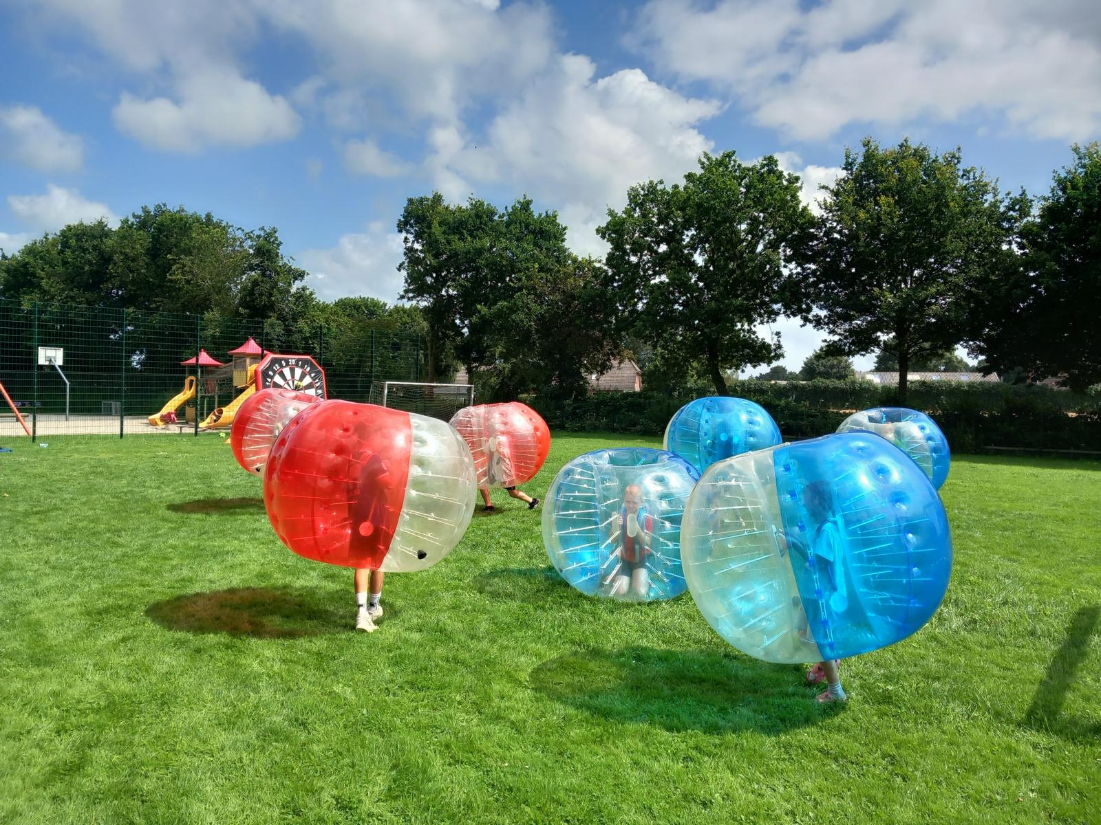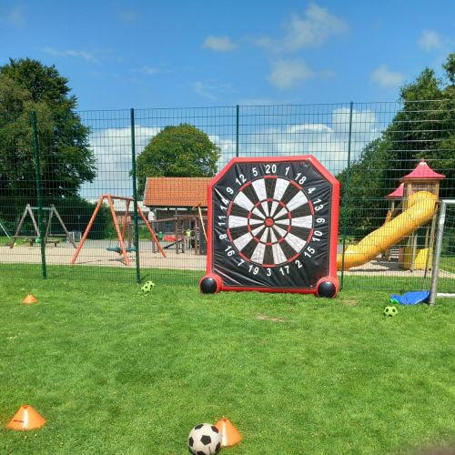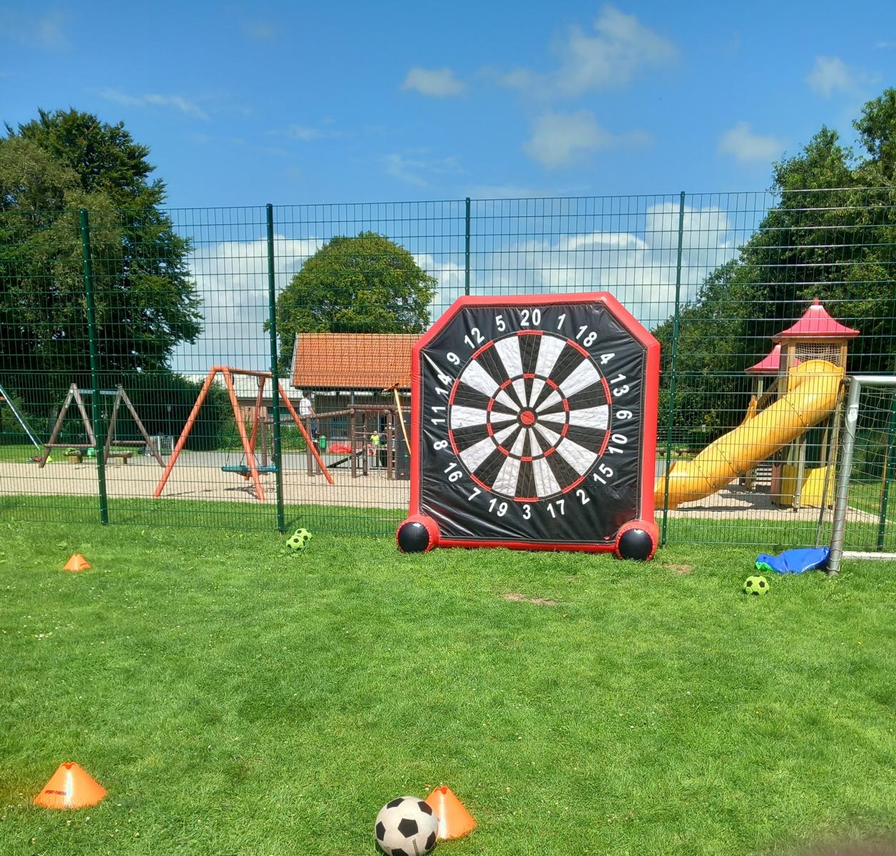 Bei bestem Wetter erfreuten sich die Teilnehmer über verschiedene Mitmachangebote. Zum Start des Tages gab es eine Vorstellungsrunde und einen Rundgang über das Gelände und die Erklärungen zu den Aktionen. Das Außengelände des Nindorfer Jugendtreffs wurde dabei bestens genutzt. 10 Bubblebälle, eine Soccerdartscheibe, Fußballbilliard und ein Amerikan Gladiator standen zur Verfügung und sorgten für viel Fun und Action bei den Kindern. Ebenso konnten die Spielgeräte des Spielplatzes und der Jugendtreff genutzt werden. Abgerundet wurde der Tag durch Wiener Würstchen, kühlen Getränken und etwas Naschi.