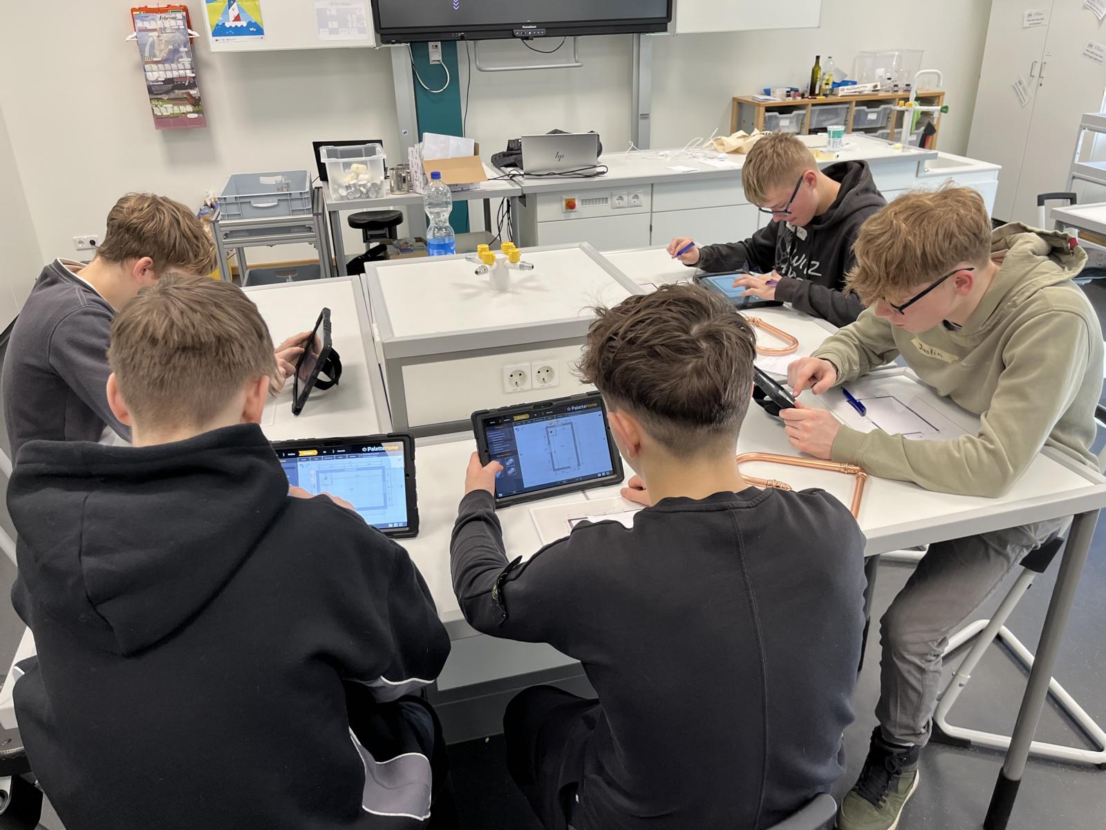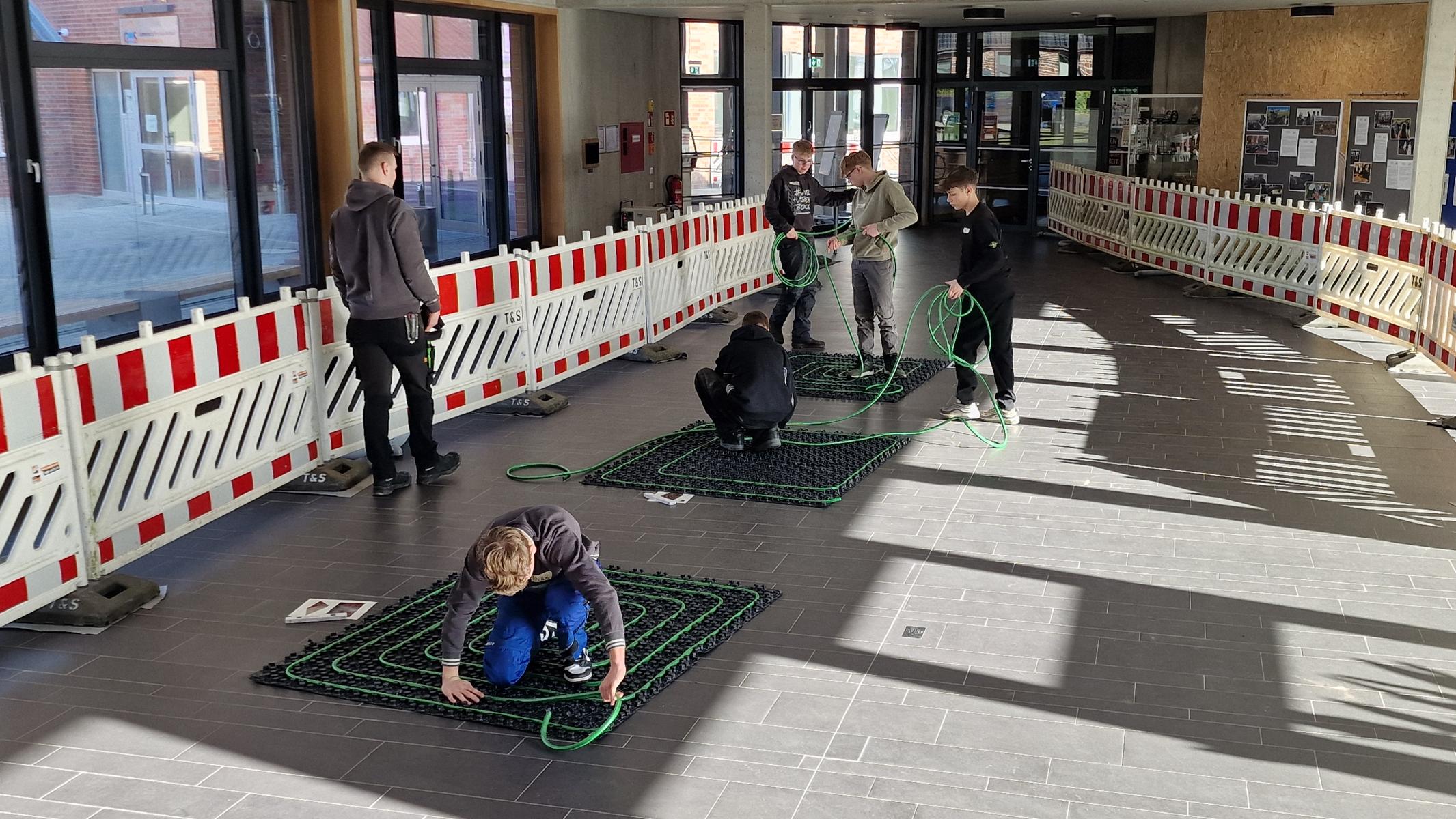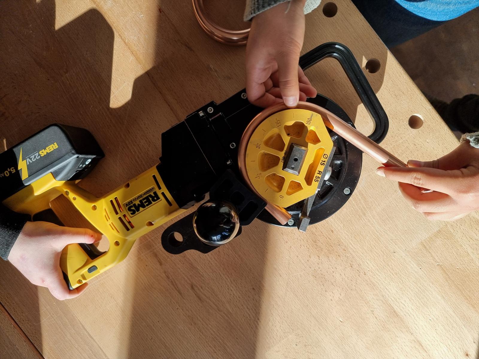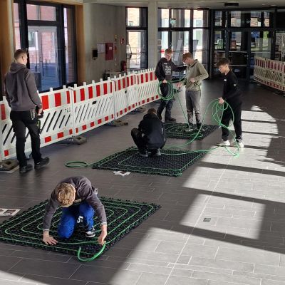 Nachdem unsere Schülerinnen und Schüler ein paar theoretische Informationen bekommen haben, konnten sie praktisch mit unterschiedlichsten Materialien arbeiten. In einer Teamchallenge wurde mit großem Spaß eine Gartenbank aus schallgedämmten Rohren gebaut. Feingefühl war bei der Herstellung eines Herzens aus Kupferrohren gefragt. Räumliches Vorstellungsvermögen wurde bei einer digitalen Badplanung benötigt und mit handwerklichem Geschick und Geduld konnte eine Fußbodenheizung verlegt werden.