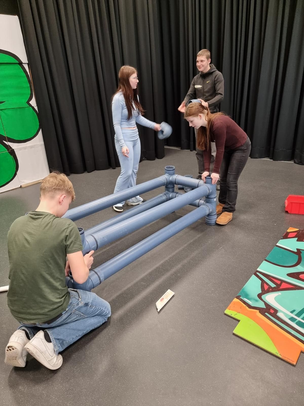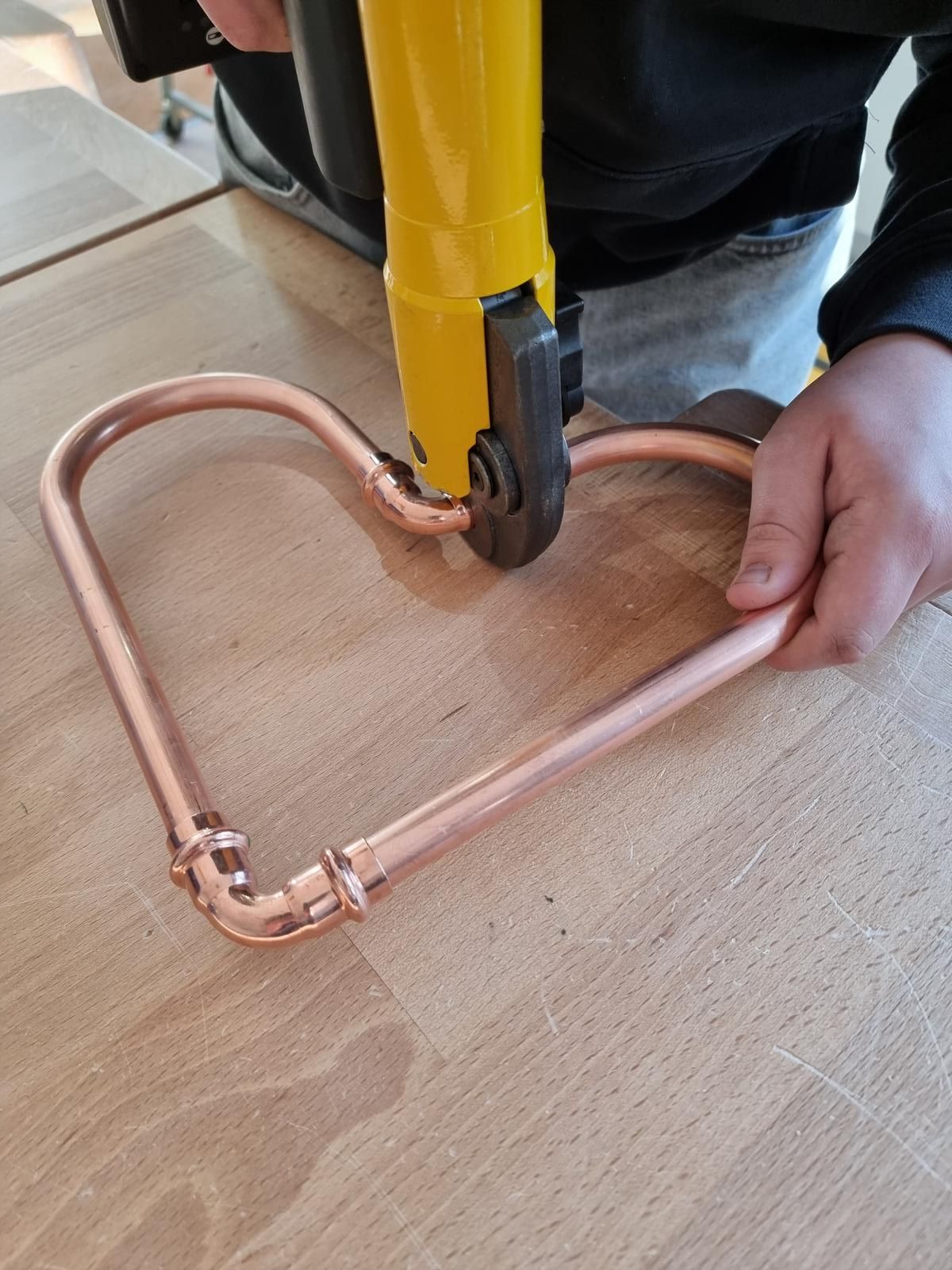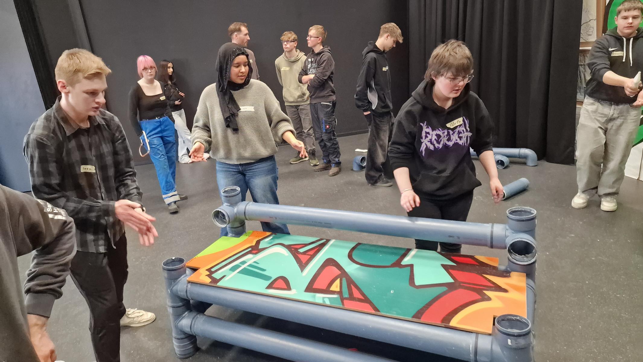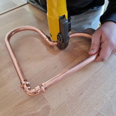 Nachdem unsere Schülerinnen und Schüler ein paar theoretische Informationen bekommen haben, konnten sie praktisch mit unterschiedlichsten Materialien arbeiten. In einer Teamchallenge wurde mit großem Spaß eine Gartenbank aus schallgedämmten Rohren gebaut. Feingefühl war bei der Herstellung eines Herzens aus Kupferrohren gefragt. Räumliches Vorstellungsvermögen wurde bei einer digitalen Badplanung benötigt und mit handwerklichem Geschick und Geduld konnte eine Fußbodenheizung verlegt werden.