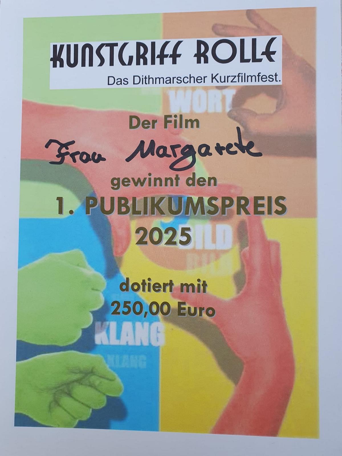 Von 48 abgegebenen Stimmen erreichte „Frau Margarete“ den ersten Platz beim Publikumspreis und wurde mit 250 Euro ausgezeichnet. Auch die Jury zeigte sich beeindruckt und lobte die Leistung der Jugendlichen, die in kurzer Zeit ein anspruchsvolles Drehbuch entwickelten und professionell umsetzten.